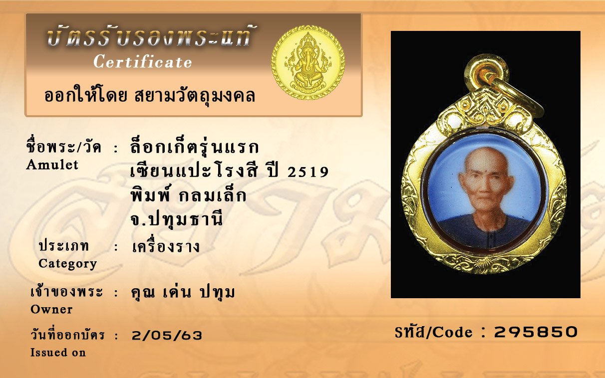 รหัสสินค้า : (295850) ล็อกเก็ตรุ่นแรก เซียนแปะโรงสี ปี 2519 พิมพ์ กลมเล็ก จังหวัดปทุมธานี