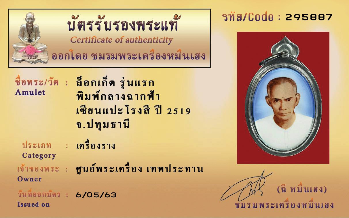 รหัสสินค้า : (295887) ล็อกเก็ตรุ่นแรก เซียนแปะโรงสี ปี 2519 พิมพ์กลางฉากฟ้า จังหวัดปทุมธานี