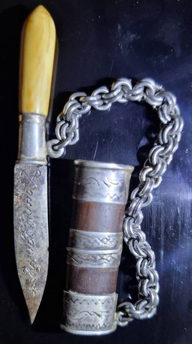 รหัสสินค้า : 305520 มีดหมอสาริกา หลวงพ่อกวย ปี 2521 วัดโฆสิตาราม จ.ชัยนาท ด้ามงาฝักไม้แหนบเงินทั้งเล่ม