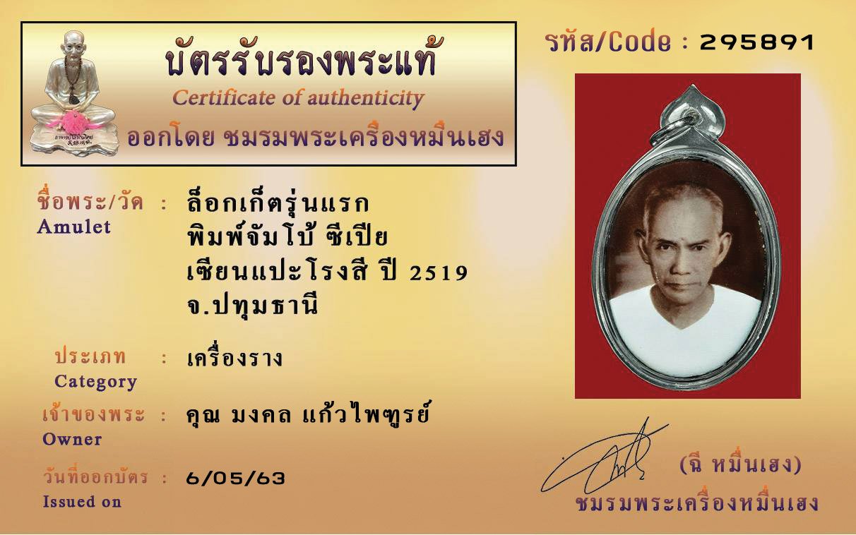รหัสสินค้า : (295891) ล็อกเก็ตรุ่นแรก เซียนแปะโรงสี ปี 2519 พิมพ์จัมโบ้ ซีเปีย จังหวัดปทุมธานี