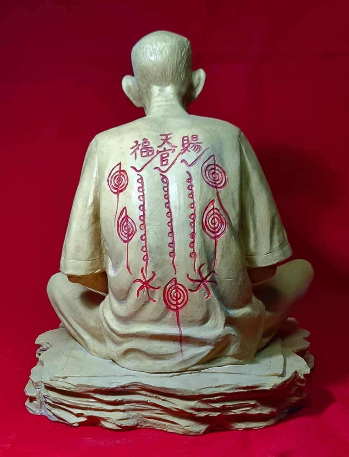 รหัสสินค้า : 305609 องค์บูชาอาแปะโรงสี รุ่น1 สีงาช้าง หลังแดง วัดศาลเจ้า ปทุมธานี ปี 2521 (ฐานหิน) ด้านหลังยันต์ฟ้าประทานพร