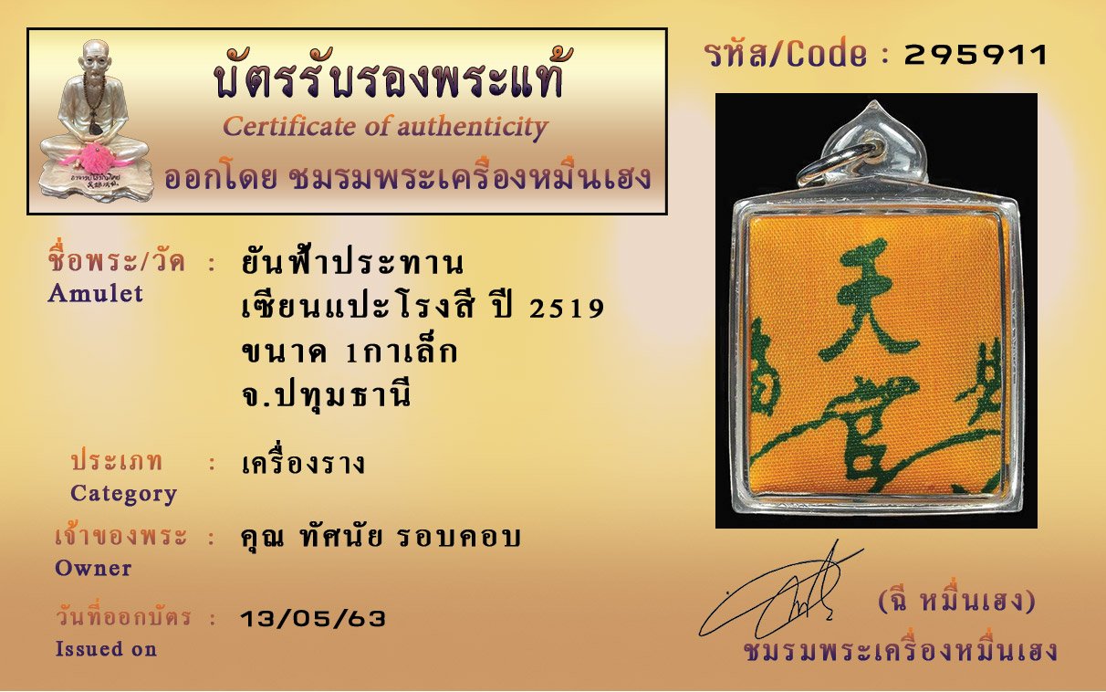 รหัสสินค้า : (295911) ยันฟ้าประทาน เซียนแปะโรงสี ปี259 ขนาด 1กาเล็ก จ.ปทุมธานี