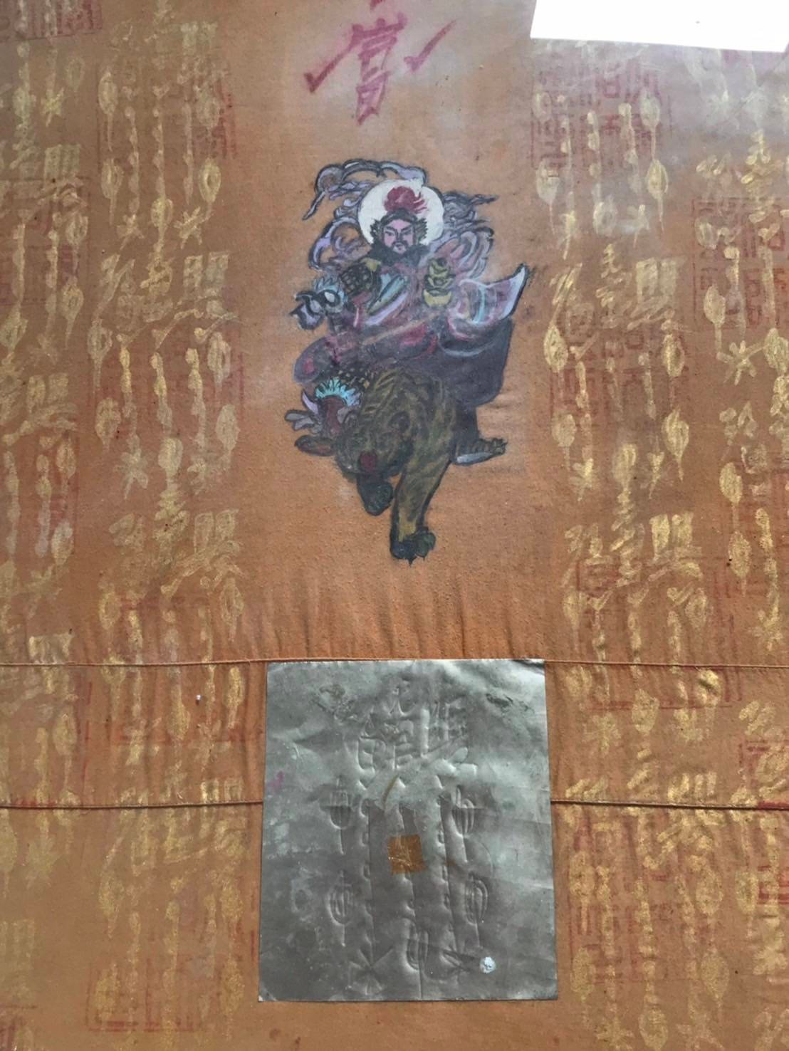 รหัสสินค้า : 305923 ผ้ายันต์ 18 กา 1 กาแผ่นเงิน เซียนแปะโรงสี โง้วกิมโคย รูปวาดเทพเจ้าไฉ่ซึ้งเอี่ย วัดศาลเจ้า ปี 2515 จ.ปทุมธานี