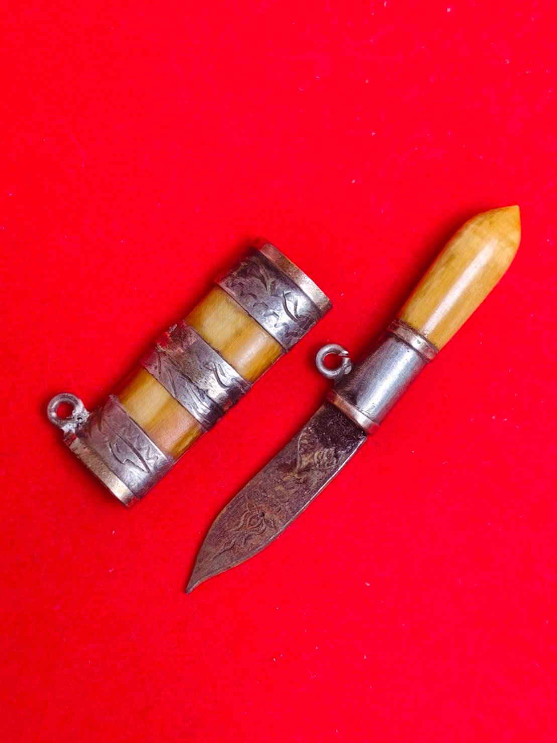 รหัสสินค้า : 306141 มีดสาริกา หมอหลวงพ่อเดิม ใบมีด เนื้อโลหะ ด้ามงา-ฝักงา แหนบเงินและนาคตลอดเล่ม จัดสร้างปี 2470-2494 วัดหนองโพธิ์จังหวัด จ.นครสวรรค์