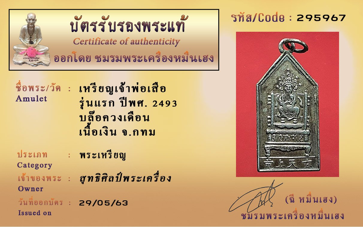 รหัสสินค้า : (295967) เหรียญเจ้าพ่อเสือ รุ่นแรก ปี2493 บล็อควงเดือน เนื้อเงิน จ.กทม.