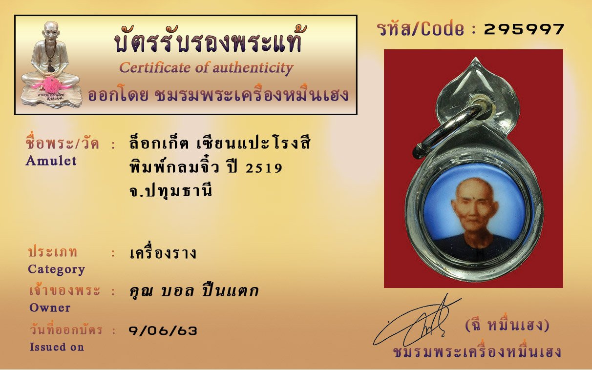 รหัสสินค้า : (295997) ล็อกเก็ต เซียนแปะโรงสี พิมพ์กลมจิ๋ว ปี 2519 จ.ปทุมธานี