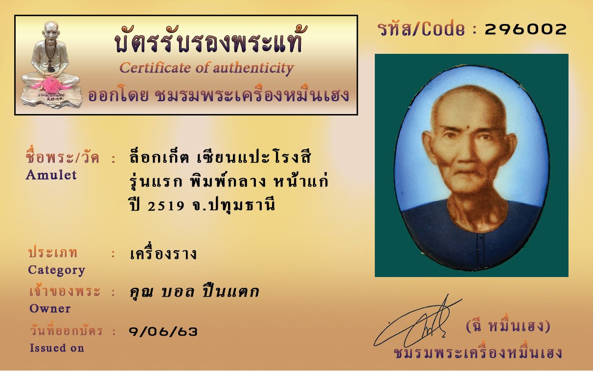 รหัสสินค้า : (296002) ล็อกเก็ต เซียนแปะโรงสี รุ่นแรก พิมพ์กลาง หน้าแก่ ปี 2519 จ.ปทุมธานี
