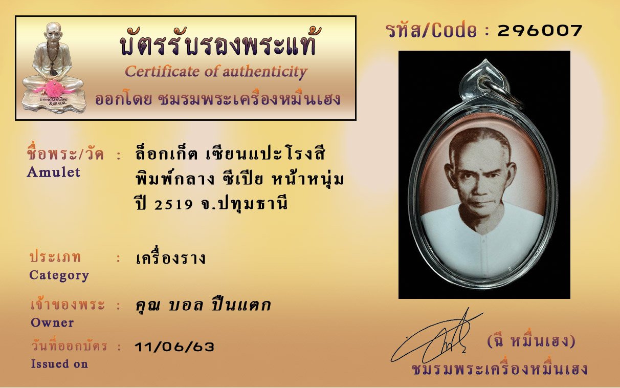 รหัสสินค้า : (296007) ล็อกเก็ต เซียนแปะโรงสี พิมพ์กลาง ซีเปีย หน้าหนุ่ม ปี 2519 จ.ปทุมธานี
