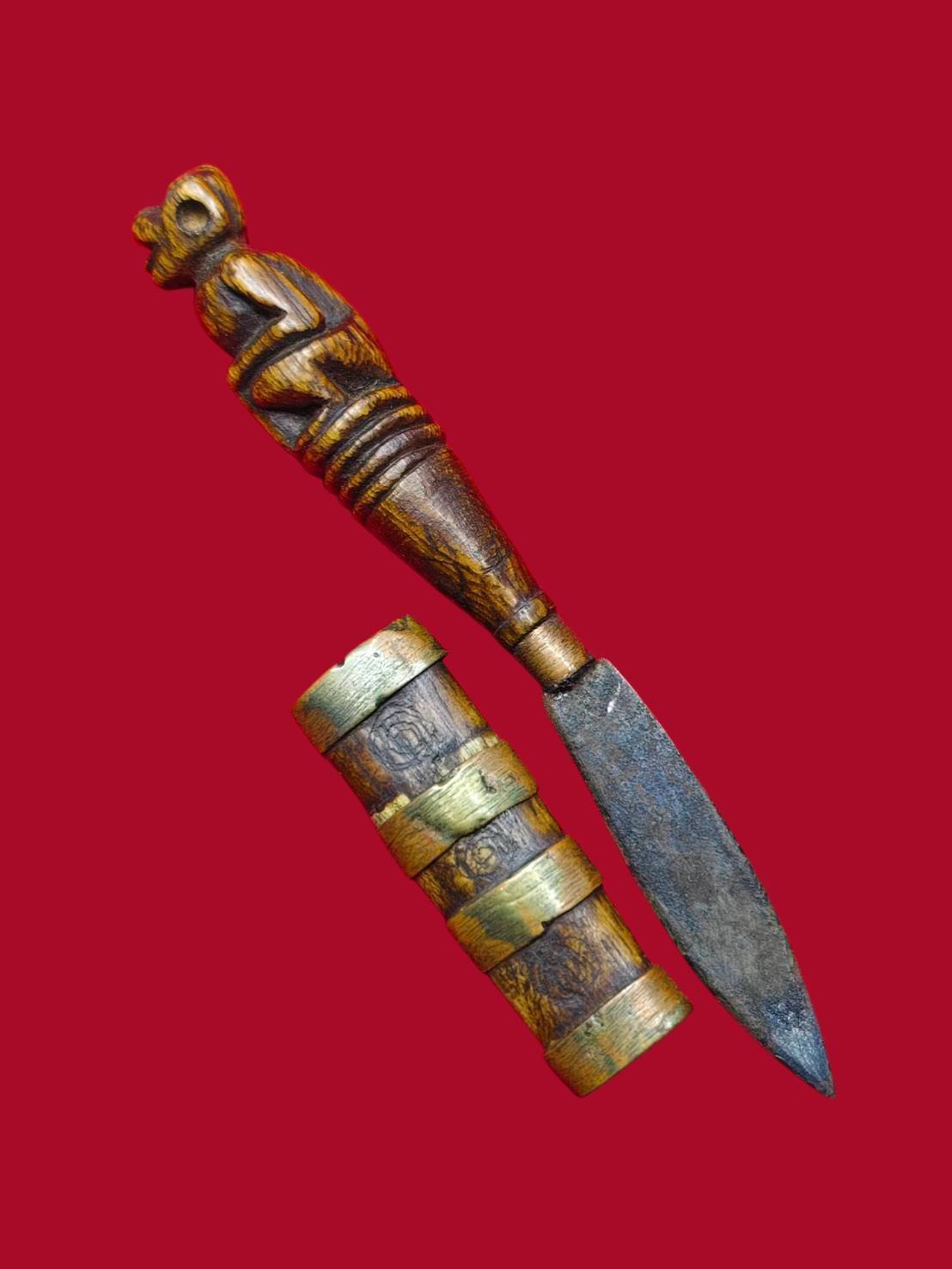 รหัสสินค้า : 306937 มีดหมอหลวงพ่อดิ่ง วัดอุสภาราม (บางวัว) ฝักไม้-ด้ามไม้ ใบโลหะ เนื้อไม้ พุทธศักราช 2475-2485 จ.ฉะเชิงเทรา