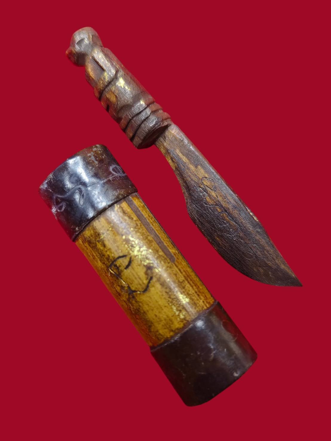 รหัสสินค้า : 307093 มีดหมอ หลวงพ่อดิ่ง วัดอุสภาราม (บางวัว) ฝักไม้-ด้ามไม้แกะองคต พุทธศักราช 2475-2485 เนื้อไม้ จ.ฉะเชิงเทรา