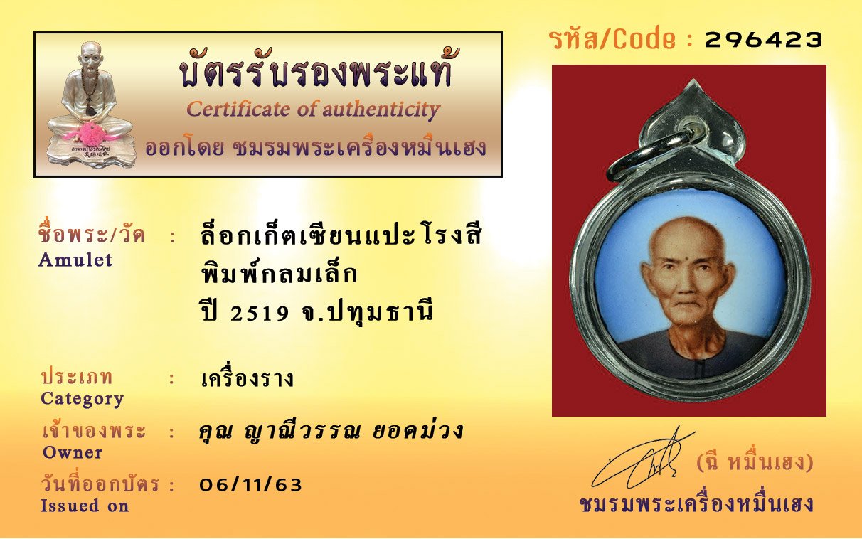 รหัสสินค้า : 296423 ล็อกเก็ตเซียนแปะโรงสี พิมพ์กลมเล็ก ปี 2519 จังหวัดปทุมธานี