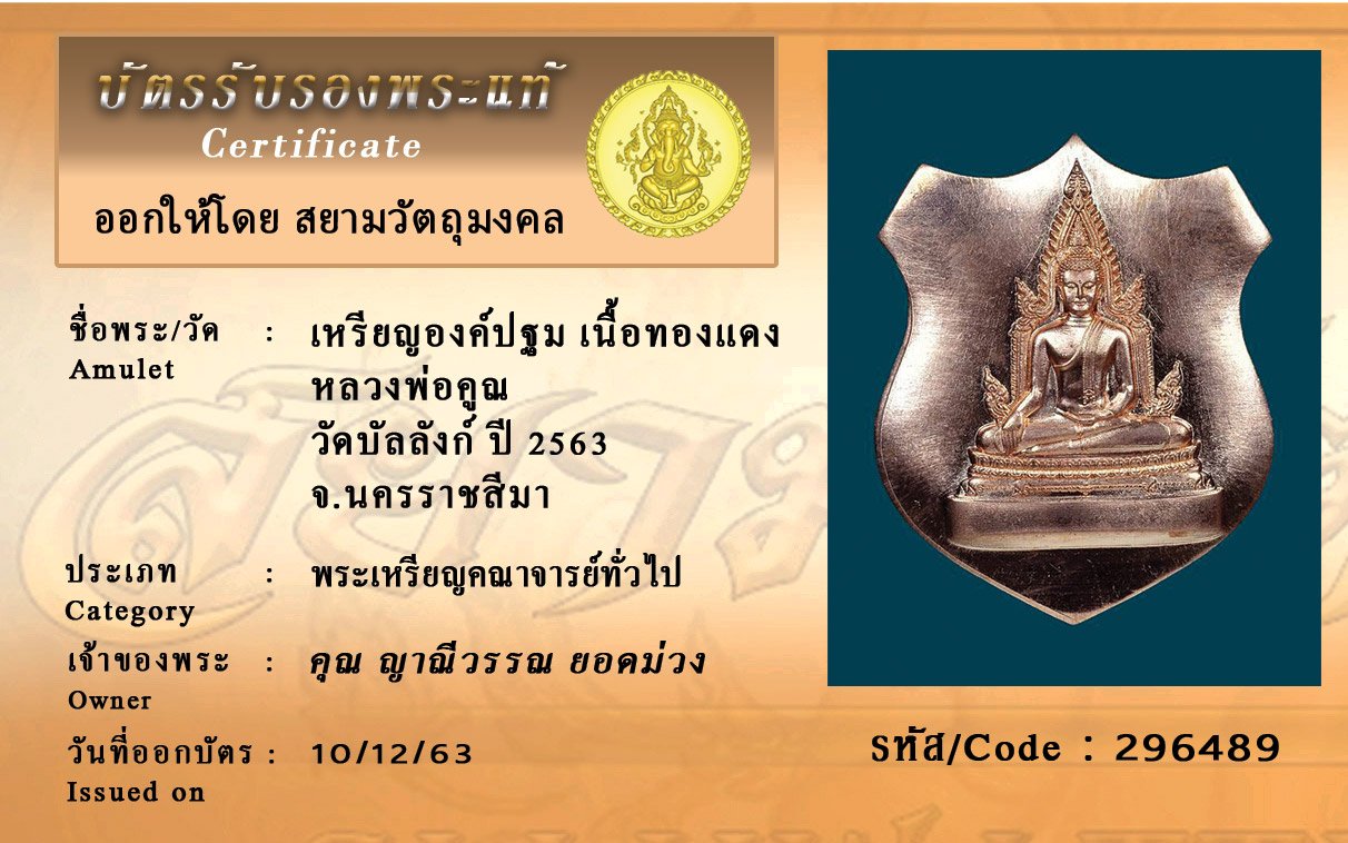 รหัสสินค้า : 296489 เหรียญองค์ปฐม เนื้อทองแดงพ. ศ. 2563 หลวงพ่อคูณวัดบัลลังก์จังหวัดนครราชสีมา