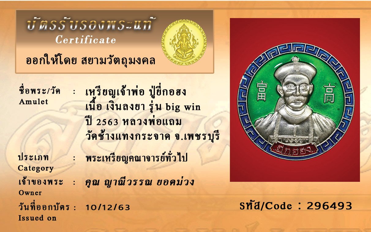 รหัสสินค้า : 296493 เหรียญเจ้าพ่อปู่ยี่กอฮง เนื้อ เงินลงยา รุ่น big win พ. ศ. 2563 หลวงพ่อแถมวัดช้างแทงกระจาด จังหวัดเพชรบุรี
