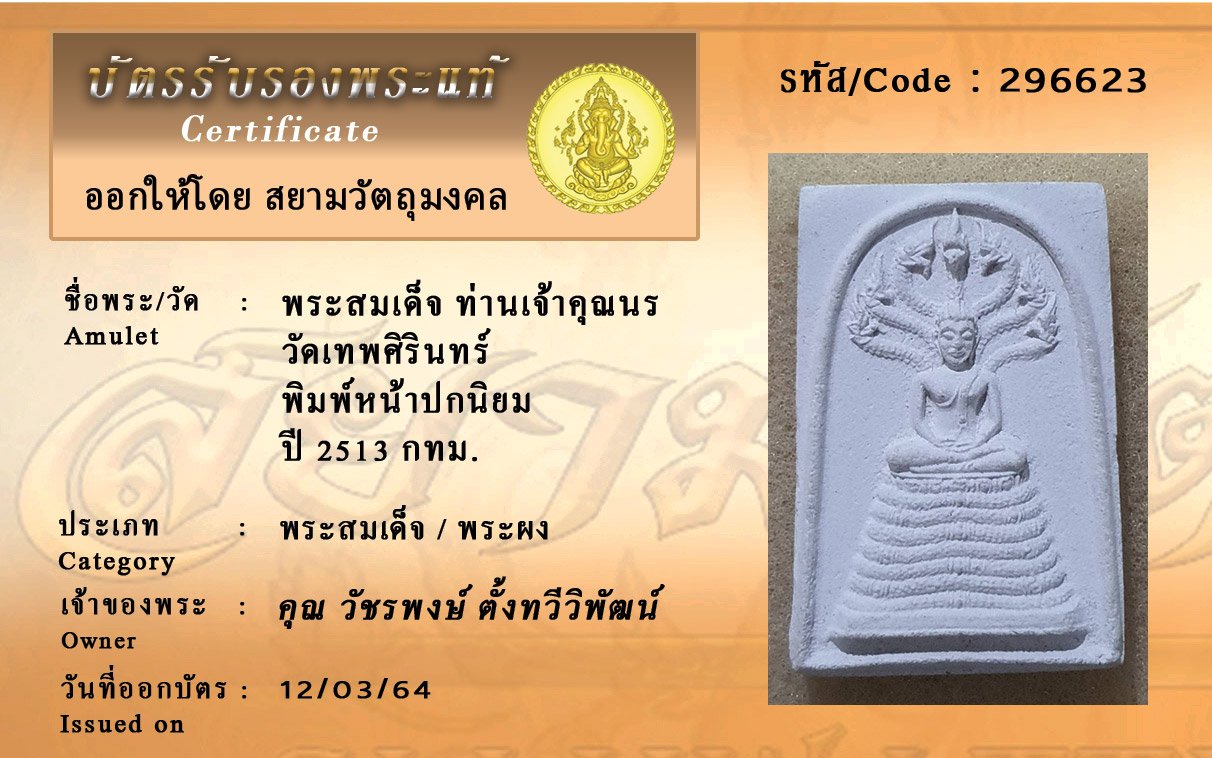 รหัสสินค้า : 296623 พระสมเด็จ ท่านเจ้าคุณนร วัดเทพศิรินทร์ พิมพ์หน้าปกนิยม ปี 2513 กทม.