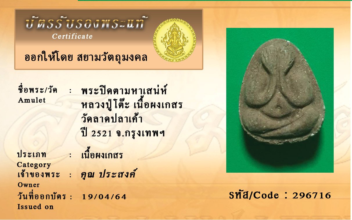 ค้นหาพระ พร้อมบัตรรับรองพระแท้