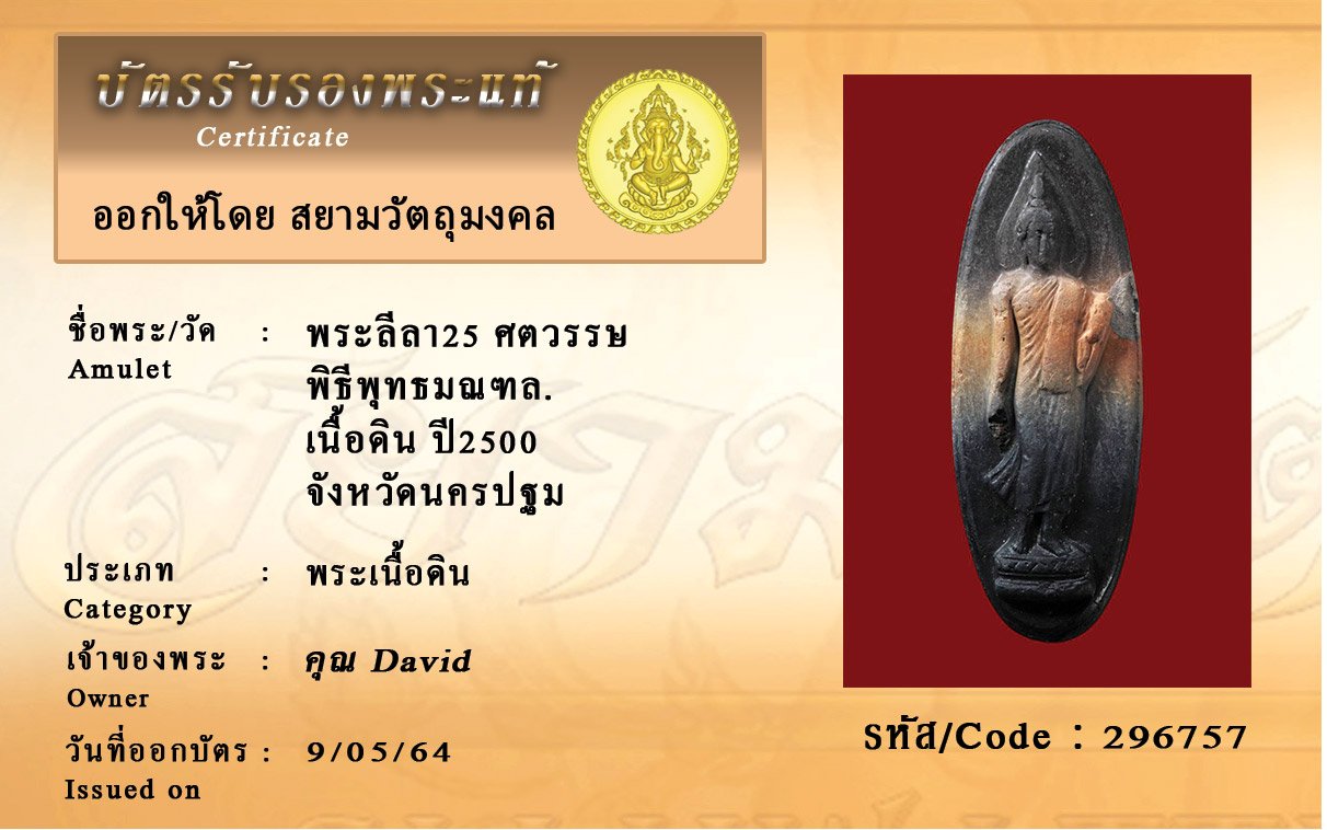 รหัสสินค้า : 296757 พระลีลา25 ศตวรรษ พิธีพุทธมณฑล. เนื้อดิน ปี2500 จังหวัดนครปฐม