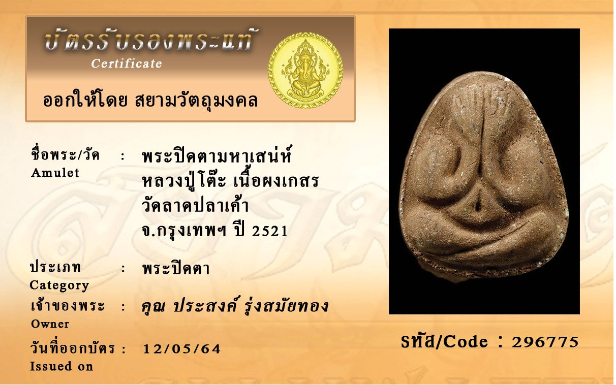 ค้นหาพระ พร้อมบัตรรับรองพระแท้