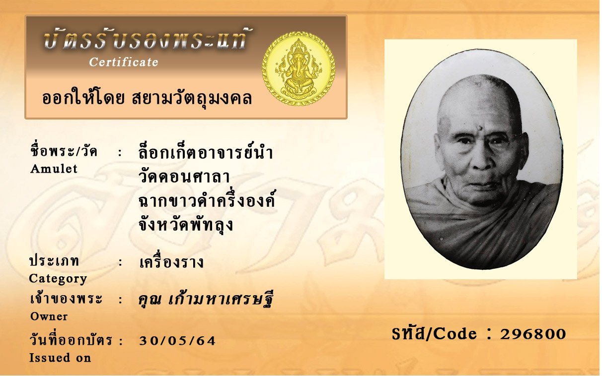 รหัสสินค้า : 296800 ล็อกเก็ตอาจารย์นำ วัดดอนศาลา ฉากขาวดำครึ่งองค์ จังหวัดพัทลุง