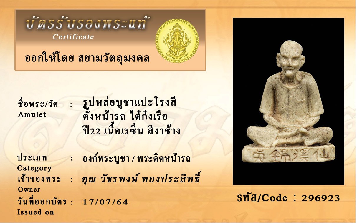 รหัสสินค้า : 296923 รูปหล่อบูชาแปะโรงสี ตั้งหน้ารถ ไต๋ก๋งเรือ ปี22 เนื้อเรซิ่น สีงาช้าง