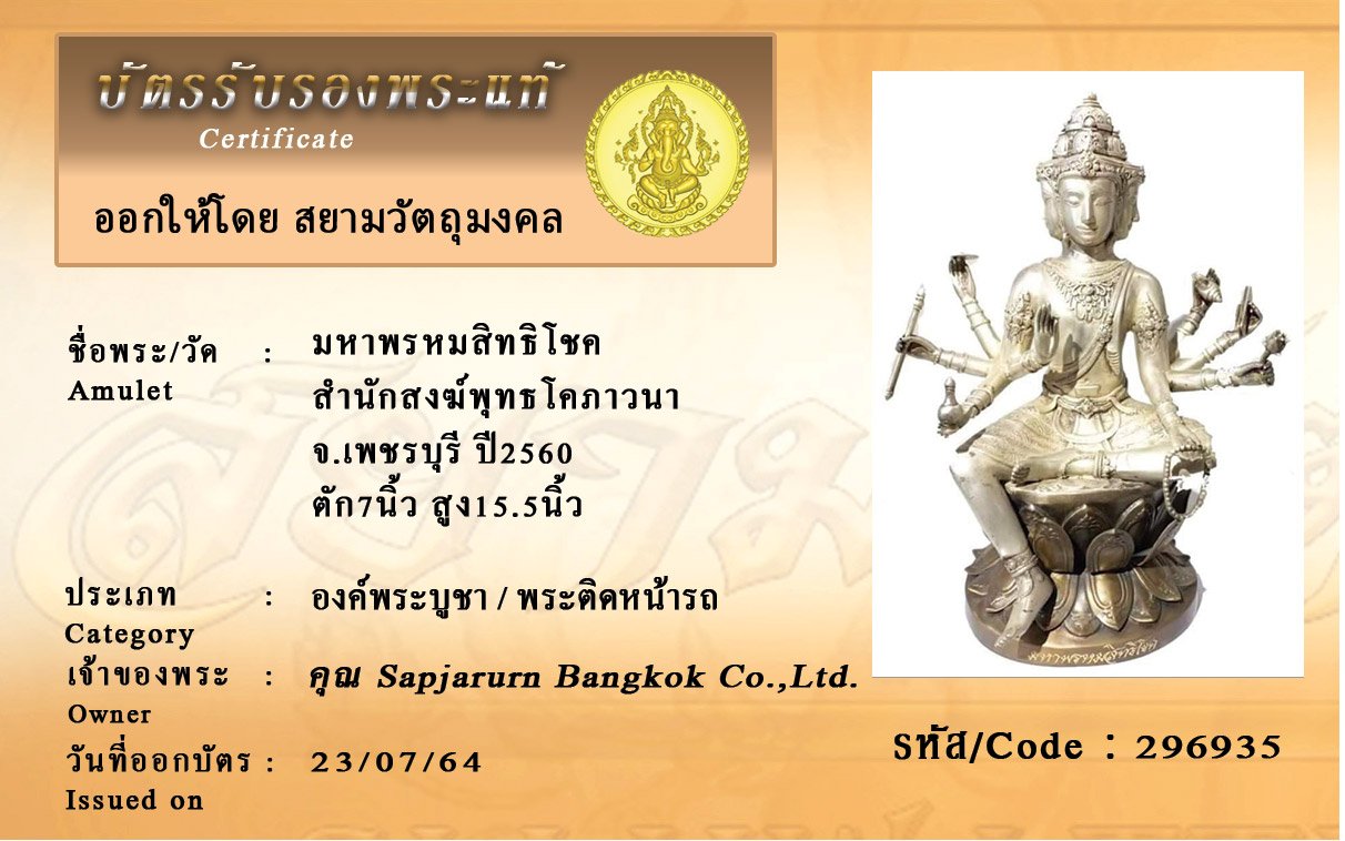 รหัสสินค้า : 296935 มหาพรหมสิทธิโชค สำนักสงฆ์พุทธโคภาวนา จ.เพชรบุรี ปี2560 ตัก7นิ้ว สูง15.5นิ้ว