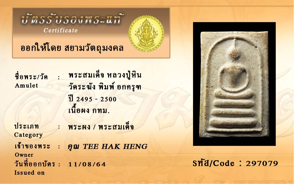 รหัสสินค้า : 297079 พระสมเด็จ หลวงปู่หิน วัดระฆัง พิมพ์ อกครุฑ ปี 2495 - 2500 เนื้อผง กทม