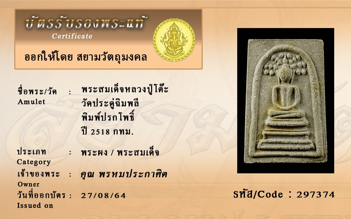 รหัสสินค้า : 297374 พระสมเด็จหลวงปู่โต๊ะ วัดประดู่ฉิมพลี พิมพ์ปรกโพธิ์ ปี 2518 กทม.