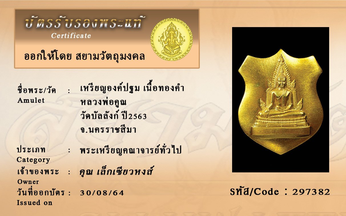 รหัสสินค้า : 297382 เหรียญองค์ปฐม เนื้อทองคำ หลวงพ่อคูณ วัดบัลลังก์ ปี2563 จ.นครราชสีมา