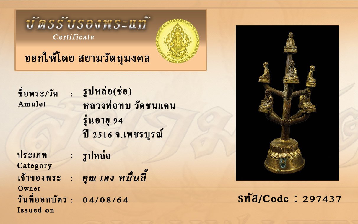 รหัสสินค้า : 297437 รูปหล่อ(ช่อ) หลวงพ่อทบ วัดชนแดน รุ่นอายุ 94 ปี 2516 จ.เพชรบูรณ์