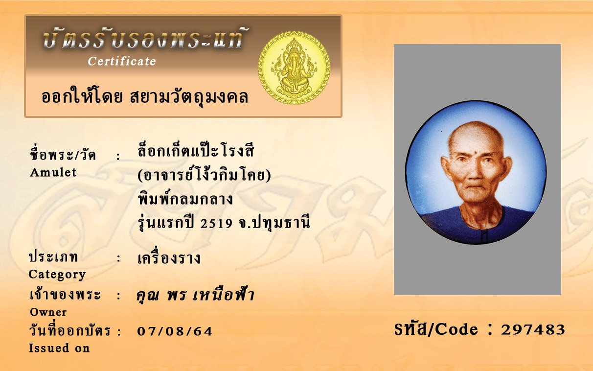 รหัสสินค้า : 297483 ล็อกเก็ตแป๊ะโรงสี (อาจารย์โง้วกิมโคย) พิมพ์กลมกลาง รุ่นแรกปี 2519 จ.ปทุมธานี