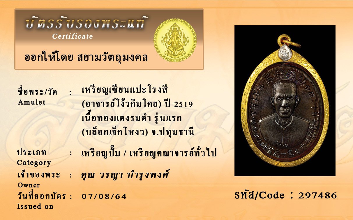 รหัสสินค้า : 297486 เหรียญเซียนแปะโรงสี (อาจารย์โง้วกิมโคย) ปี 2519 เนื้อทองแดงรมดำ รุ่นแรก (บล็อกเจ็กโหงว) จ.ปทุมธานี