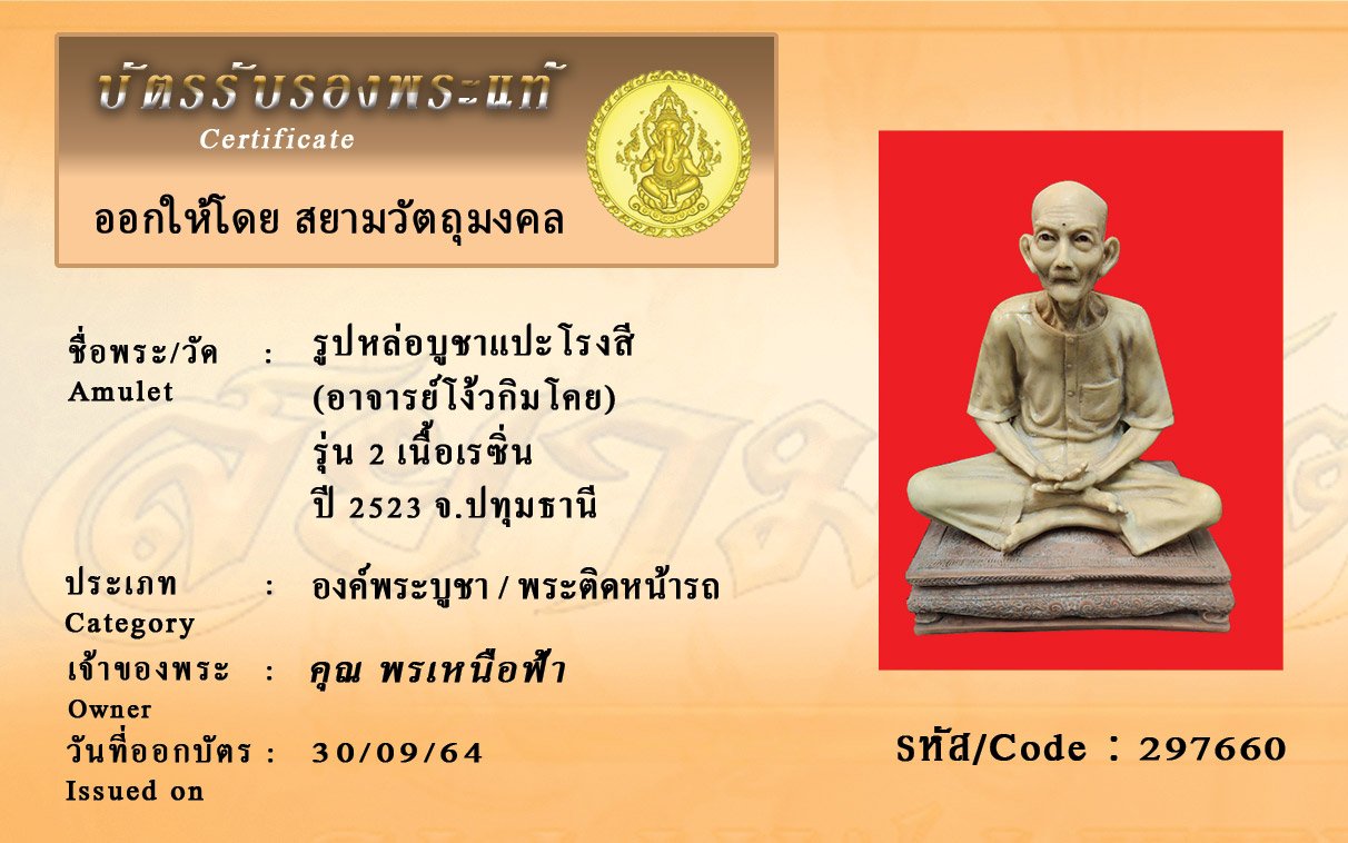 รหัสสินค้า : 297660 รูปหล่อบูชาแปะโรงสี (อาจารย์โง้วกิมโคย) รุ่น 2 เนื้อเรซิ่น ปี 2523 จ.ปทุมธานี