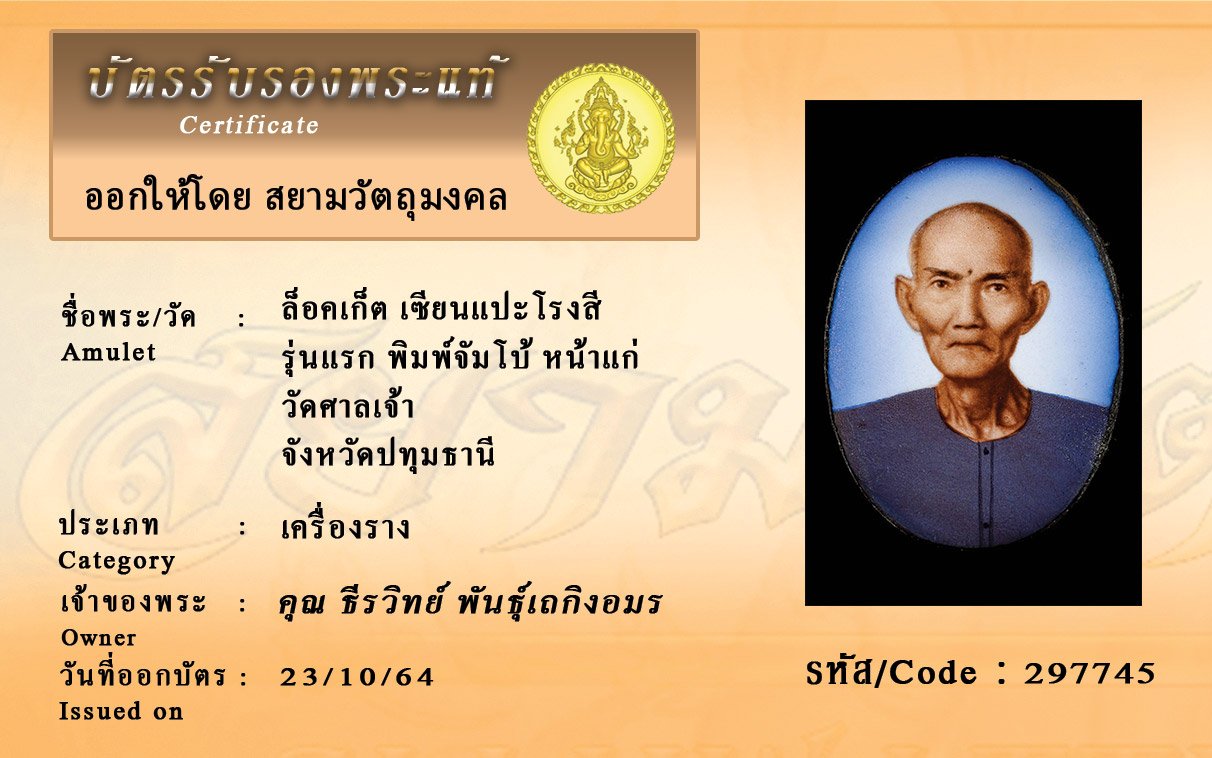รหัสสินค้า : 297745 ล็อคเก็ต เซียนแปะโรงสี รุ่นแรก พิมพ์จัมโบ้ หน้าแก่ วัดศาลเจ้า จังหวัดปทุมธานี