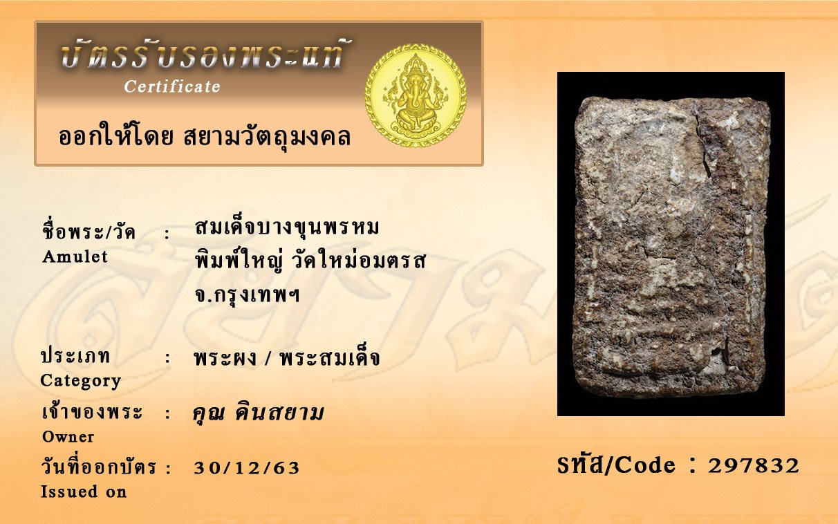 รหัสสินค้า : 297832 สมเด็จบางขุนพรหม พิมพ์ใหญ่ วัดใหม่อมตรส จ.กรุงเทพฯ