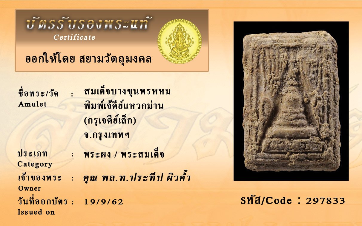 รหัสสินค้า : 297833 สมเด็จบางขุนพรหหม พิมพ์เจ้ดีย์แหวกม่าน (กรุเจดีย์เล็ก) จ.กรุงเทพฯ