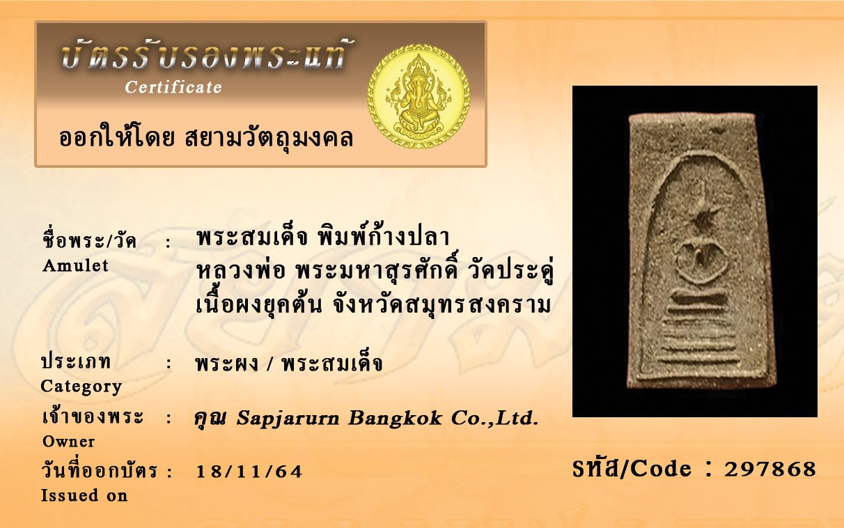 รหัสสินค้า : 297868 พระสมเด็จ พิมพ์ก้างปลา หลวงพ่อ พระมหาสุรศักดิ์ วัดประดู่ เนื้อผงยุคต้น จังหวัดสมุทรสงคราม