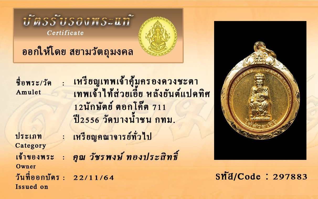 รหัสสินค้า : 297883 เหรียญเทพเจ้าคุ้มครองดวงชะตา เทพเจ้าไท้ส่วยเอี้ย หลังยันต์แปดทิศ 12นักษัตย์ ตอกโค๊ต 711 ปี2556 วัดบางน้ำชน กทม.