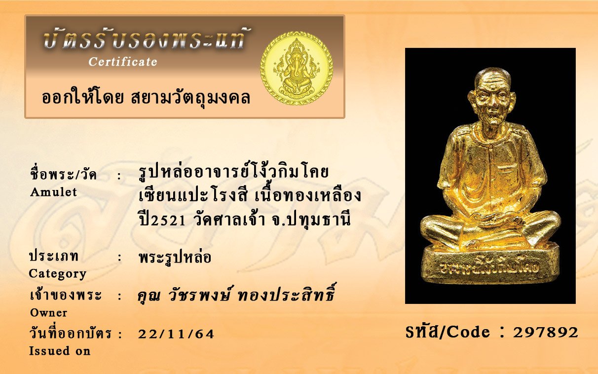 รหัสสินค้า : 297892 รูปหล่ออาจารย์โง้วกิมโคย เซียนแปะโรงสี เนื้อทองเหลือง ปี2521 วัดศาลเจ้า จ.ปทุมธานี