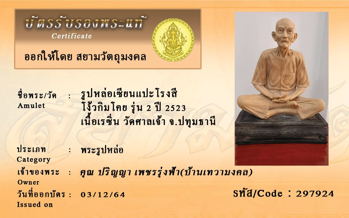 รหัสสินค้า : 297924 รูปหล่อเซียนแปะโรงสี โง้วกิมโคย รุ่น 2 ปี 2523 เนื้อเรซิ่น วัดศาลเจ้า จ.ปทุมธานี