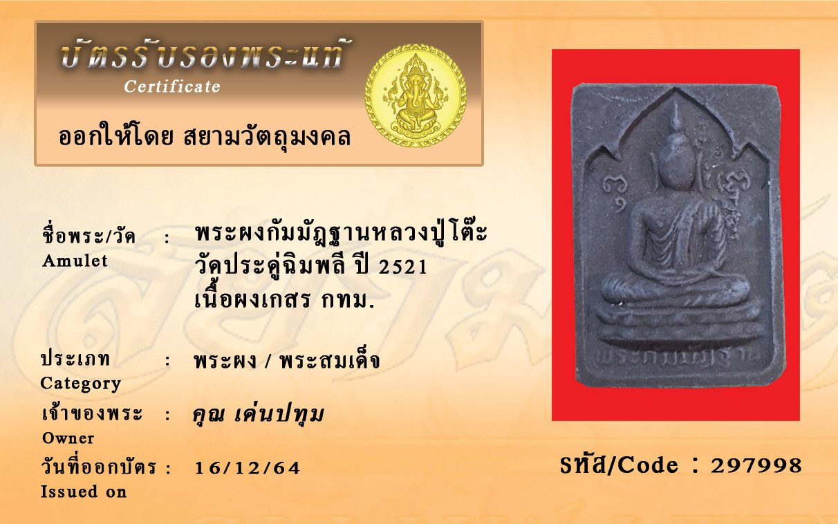 ค้นหาพระ พร้อมบัตรรับรองพระแท้