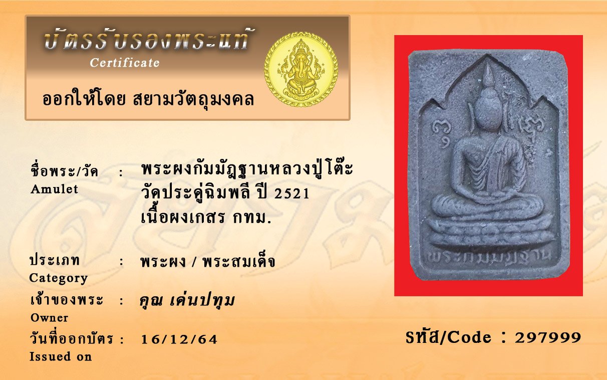 ค้นหาพระ พร้อมบัตรรับรองพระแท้