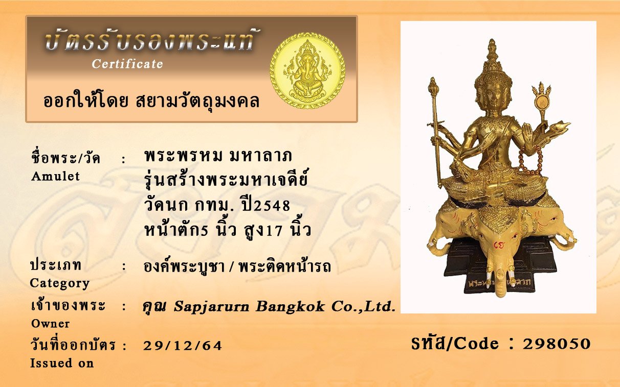 รหัสสินค้า : 298050 พระพรหมมหาลาภ รุ่นสร้างพระมหาเจดีย์ วัดนก กทม. ปี2548 หน้าตัก5 นิ้ว สูง17 นิ้ว