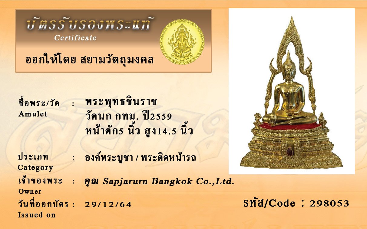 รหัสสินค้า : 298053 พระพุทธชินราช วัดนก กทม. ปี2559 หน้าตัก5 นิ้ว สูง14.5 นิ้ว