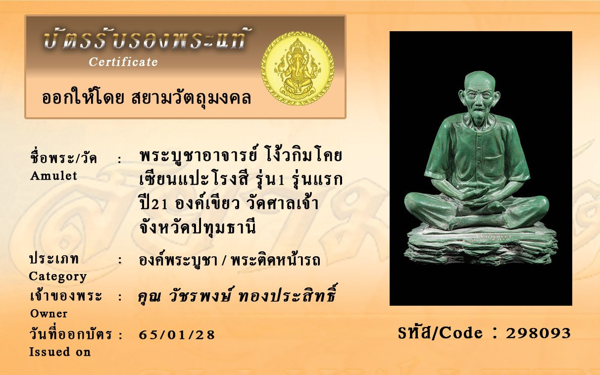 รหัสสินค้า : 298093 พระบูชาอาจารย์ โง้วกิมโคย เซียนแปะโรงสี รุ่น1 รุ่นแรก ปี21 องค์เขียว วัดศาลเจ้า จังหวัดปทุมธานี