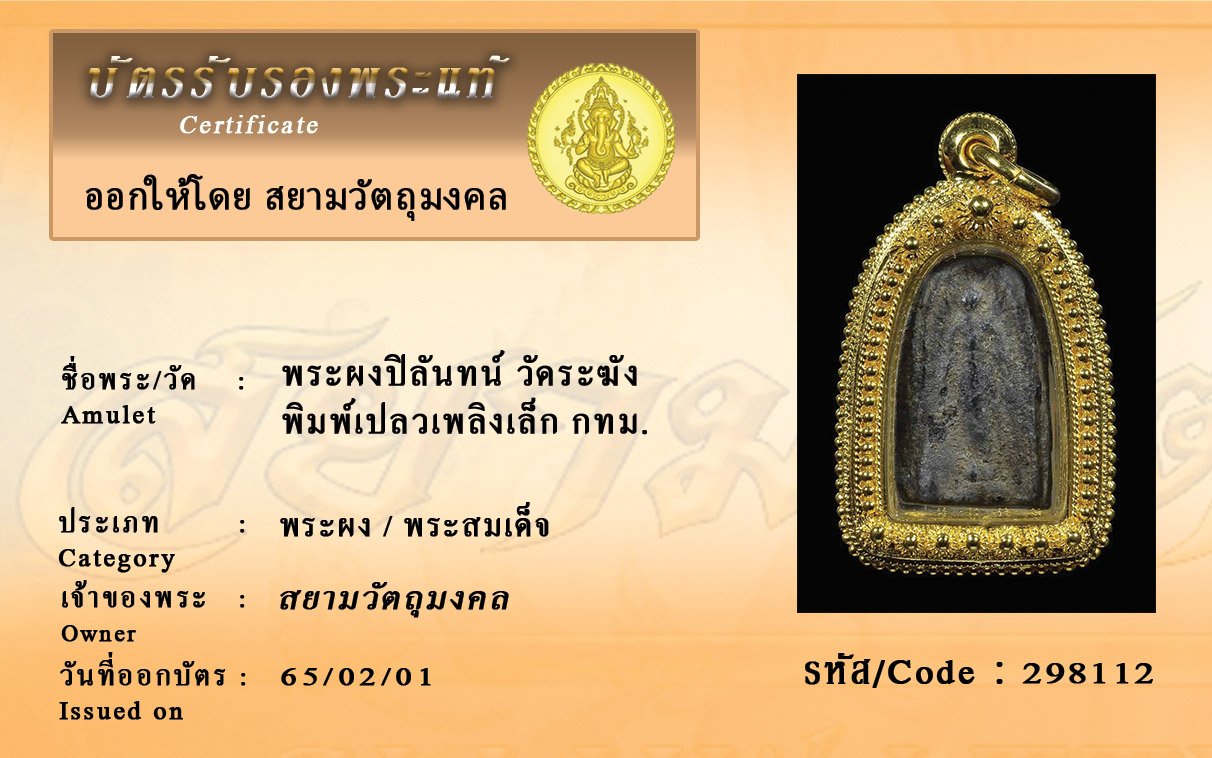 รหัสสินค้า : 298112 พระผงปิลันทน์ วัดระฆัง พิมพ์เปลวเพลิงเล็ก กทม.