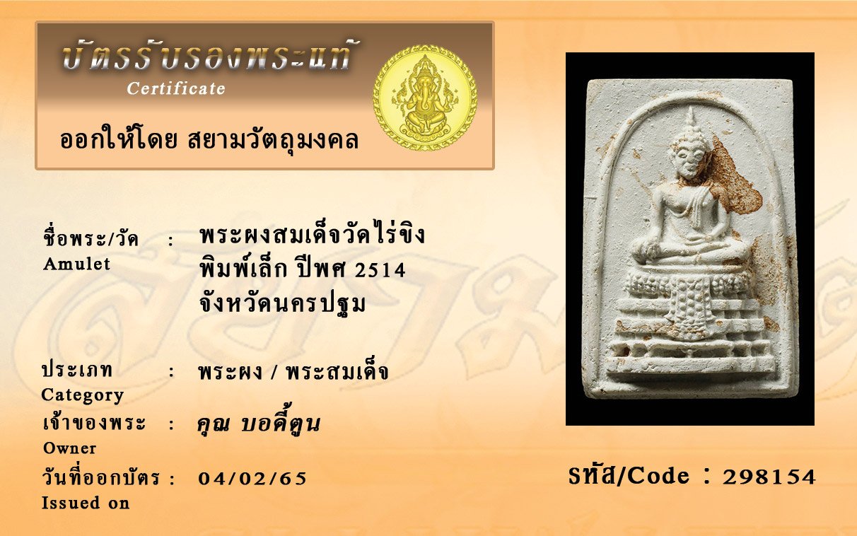 รหัสสินค้า : 298154 พระผงสมเด็จวัดไร่ขิง พิมพ์เล็ก ปีพศ 2514 จังหวัดนครปฐม