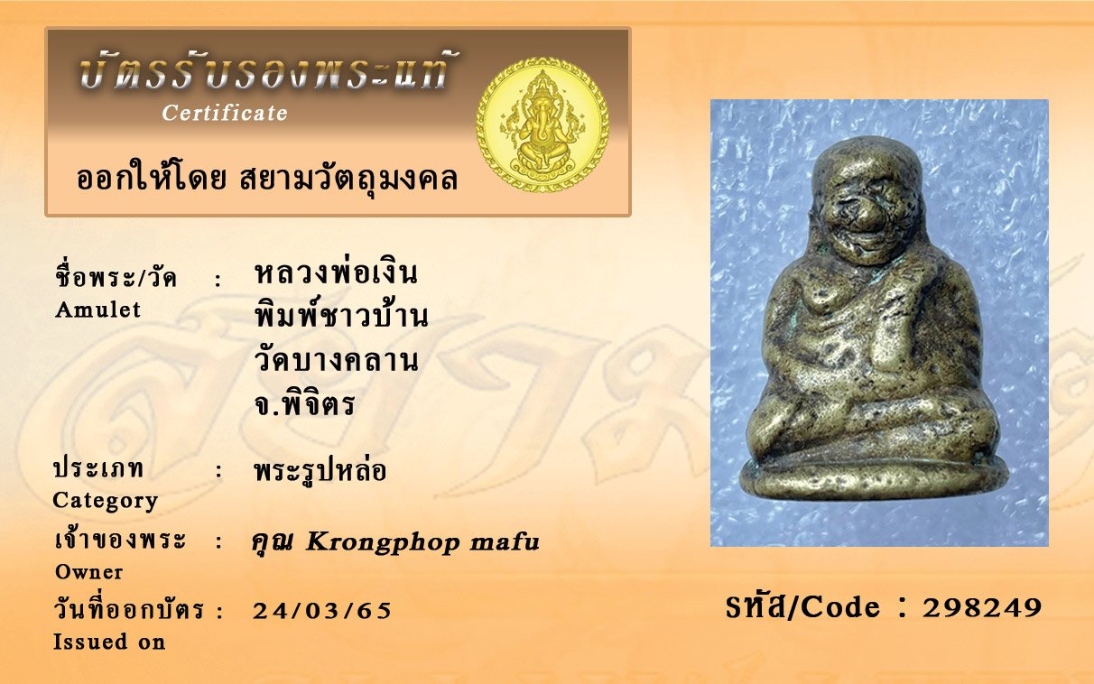 รหัสสินค้า : 298249 หลวงพ่อเงิน พิมพ์ชาวบ้าน วัดบางคลาน จ.พิจิตร