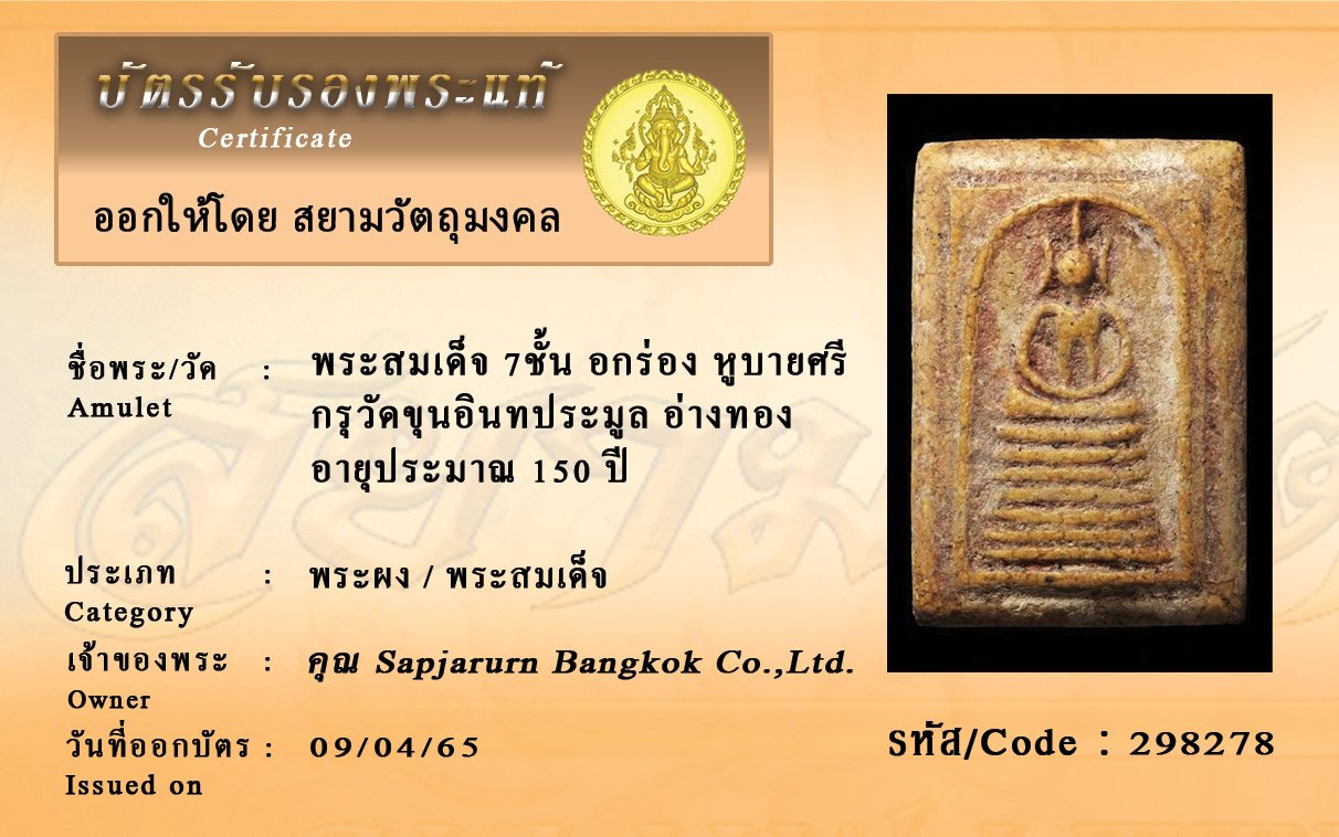 รหัสสินค้า : 298278 พระสมเด็จ 7ชั้น อกร่อง หูบายศรี กรุวัดขุนอินทประมูล อ่างทอง อายุประมาณ 150 ปี