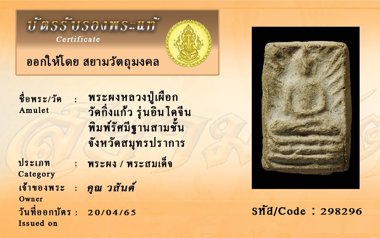 รหัสสินค้า : 298296 พระผงหลวงปู่เผือก วัดกิ่งแก้ว รุ่นอินโดจีน พิมพ์รัศมีฐานสามชั้น จังหวัดสมุทรปราการ