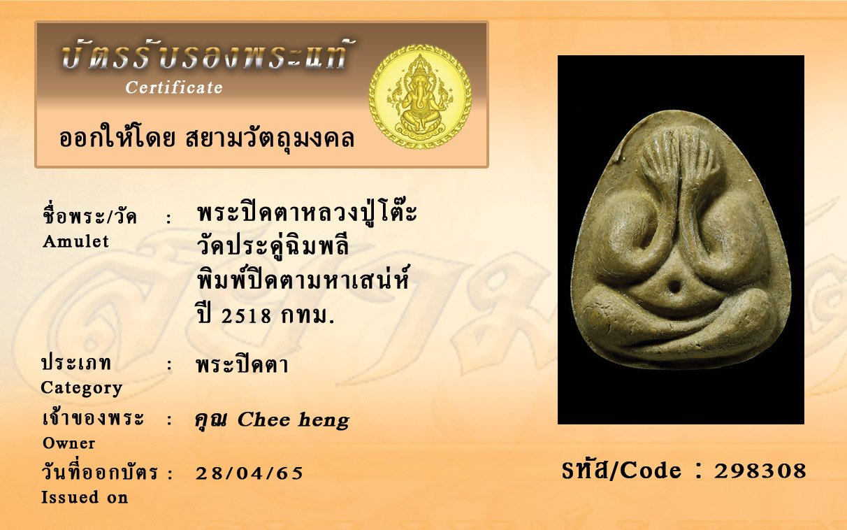รหัสสินค้า : 298308 พระปิดตาหลวงปู่โต๊ะ วัดประดู่ฉิมพลี พิมพ์ปิดตามหาเสน่ห์ ปี 2518 กทม.