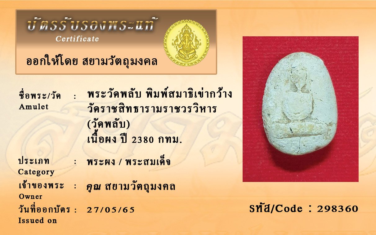 รหัสสินค้า : 298360 พระวัดพลับ พิมพ์สมาธิเข่ากว้าง วัดราชสิทธารามราชวรวิหาร (วัดพลับ) เนื้อผง ปี 2380 กทม.